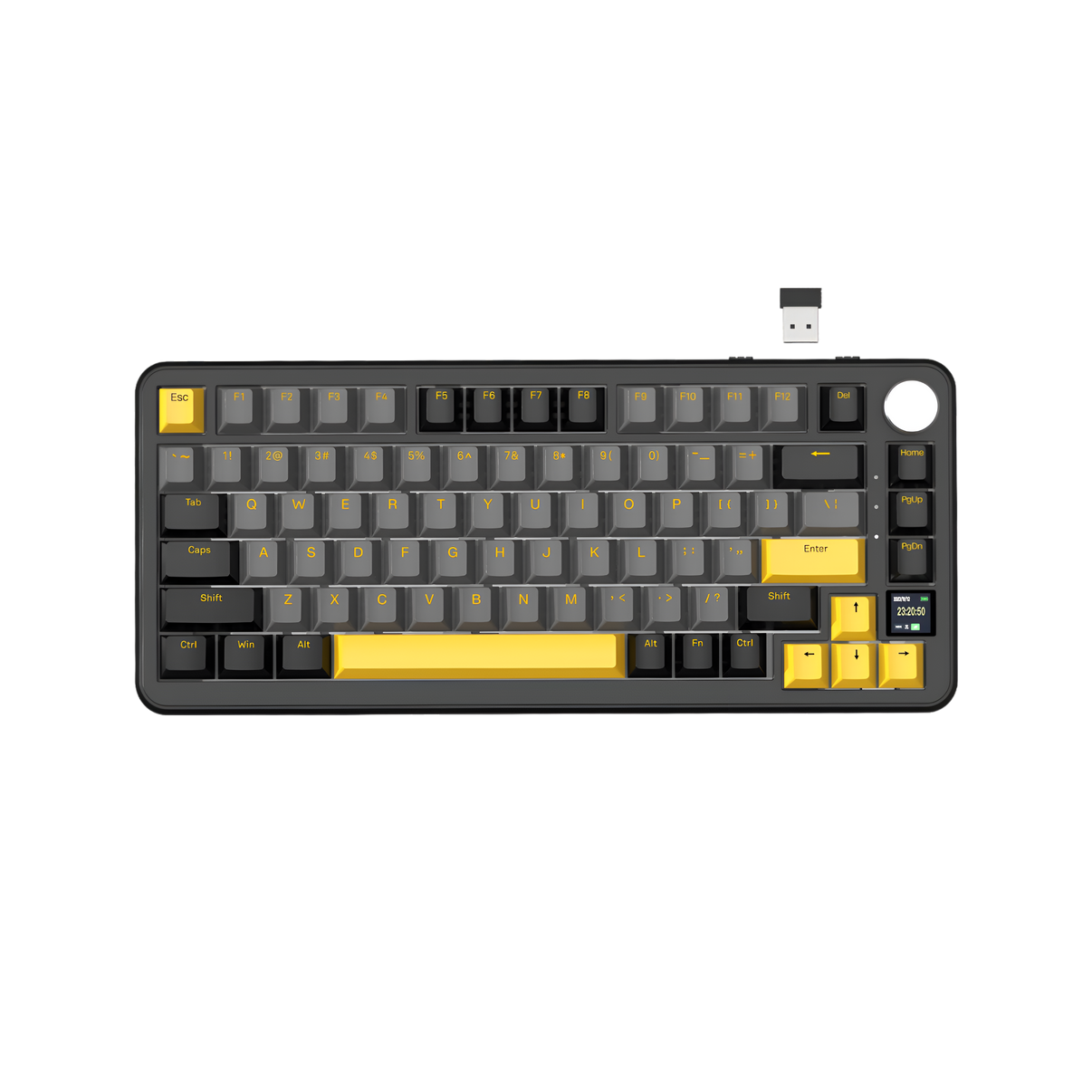 Het 0,85” TFT-scherm geeft je in één oogopslag alle informatie die je nodig hebt: batterijstatus, verbindingsmodus en instellingen. Zo weet je altijd precies hoe je toetsenbord presteert. Met de multifunctionele draaiknop pas je razendsnel volume, verlichting en andere functies aan, zonder gedoe in menu’s of software. Efficiënt, modern en intuïtief.