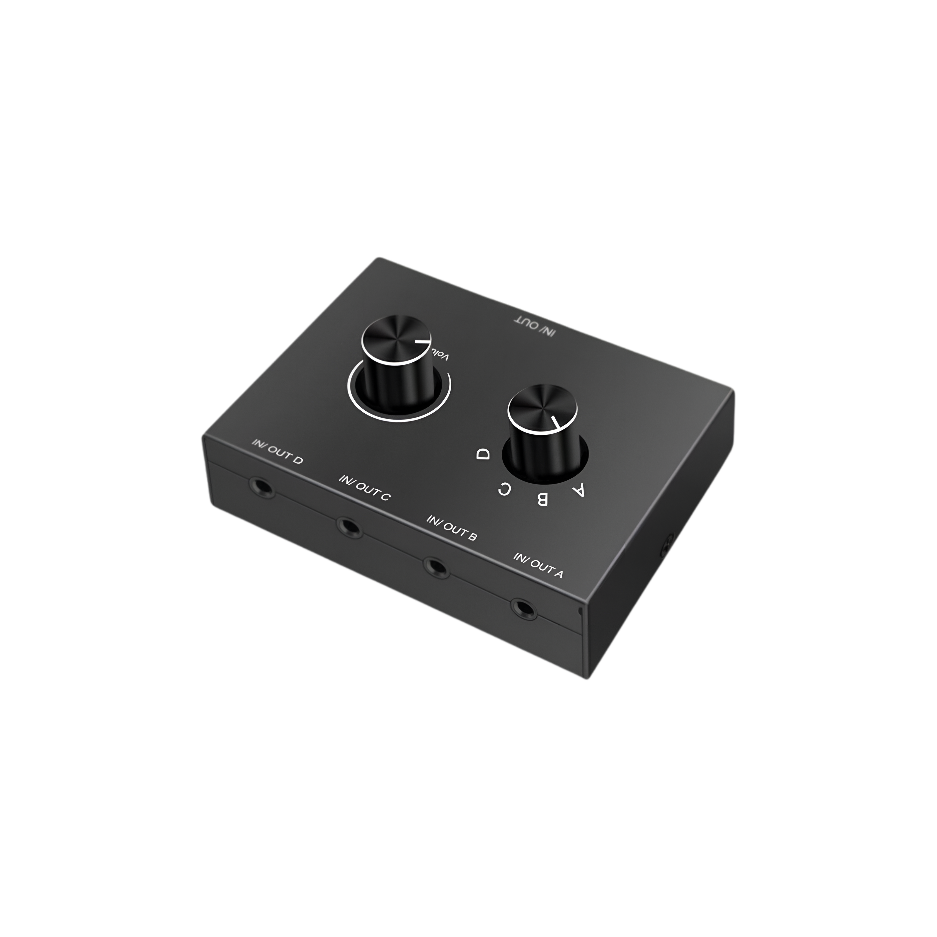 Deze Audio Switcher 4-Way laat je met een simpele draaiknop kiezen uit vier verschillende audiobronnen of één signaal verdelen naar meerdere apparaten. Zo houd je je installatie overzichtelijk en geniet je van maximale flexibiliteit in je audio-setup.